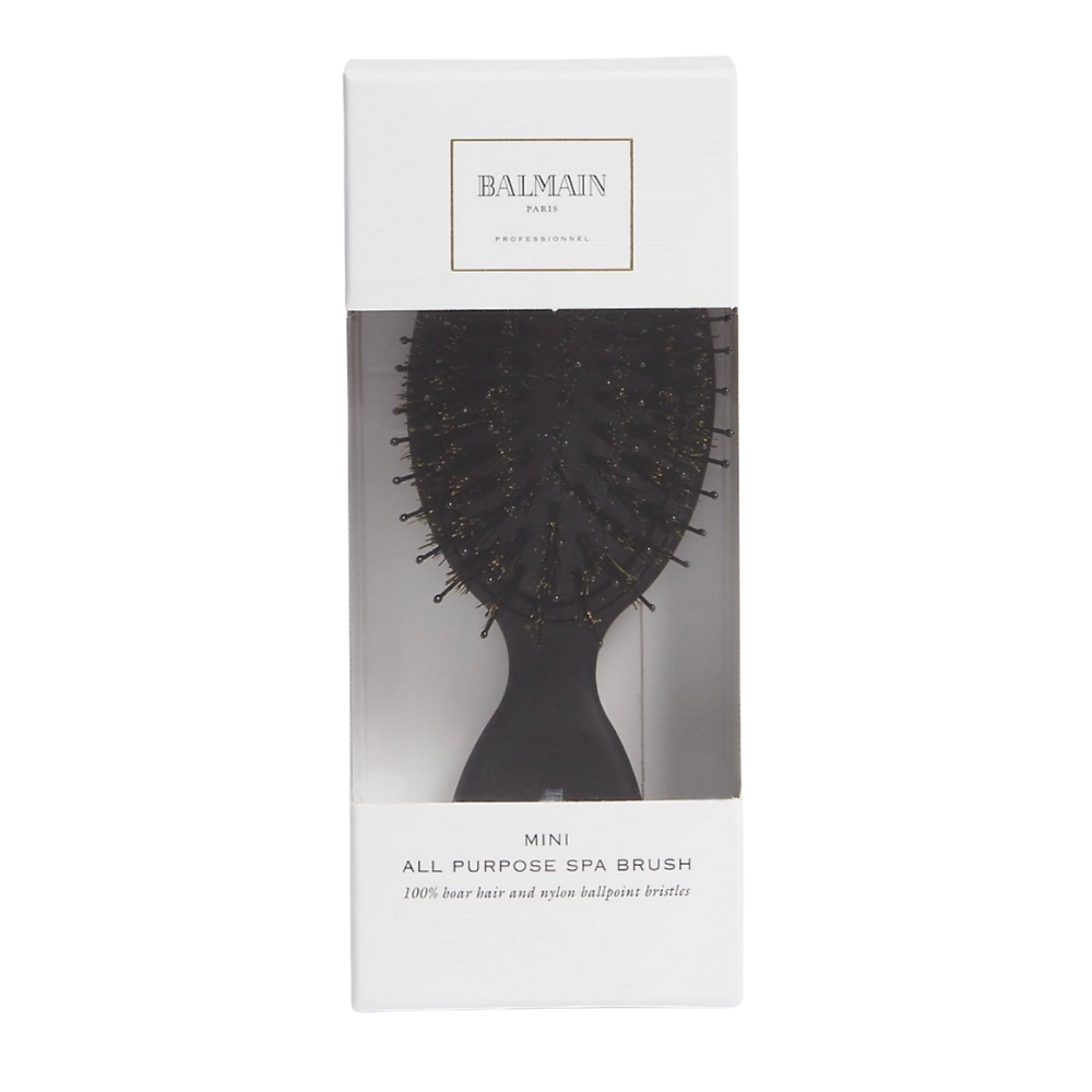 The Balmain All Purpose Spa Brush is an essential tool for anyone seeking to maintain and enhance the health and appearance of their hair. This professional-grade brush combines the finest quality 100% boar bristles with robust nylon bristles, engineered to distribute the scalp's natural oils from root to tip.