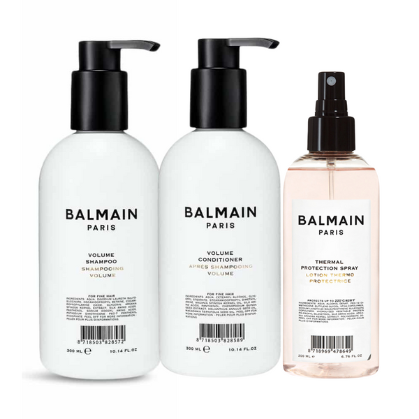 Elevate your hair care regimen with the Balmain Volume & Hot Styling Trio Set. This luxurious set features the Balmain Volume Shampoo and Conditioner, designed to gently cleanse and nourish fine hair while adding full-bodied volume.
