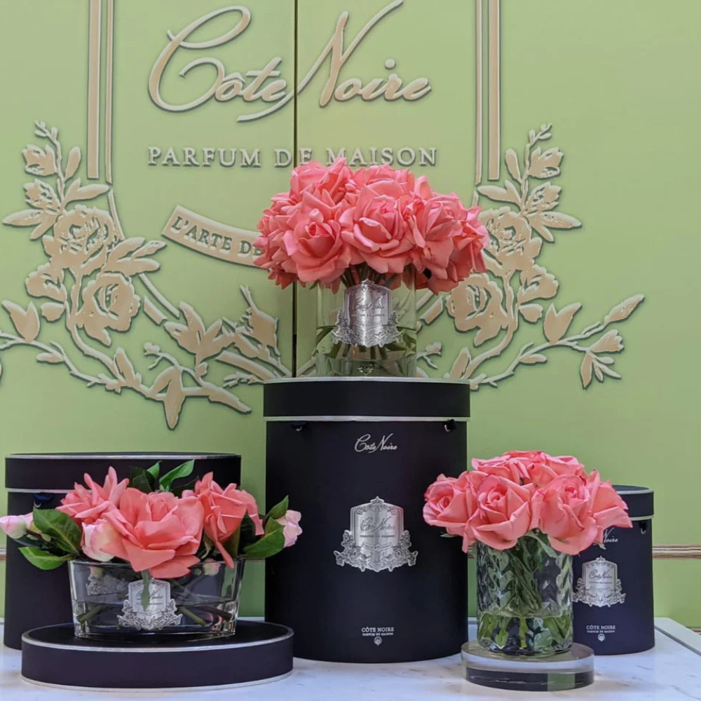 The special gel formula is hand poured, and each flower stem is cut to size and arranged by one of our passionate floral designers. Each is then perfumed by hand, individually checked & finally hand boxed.