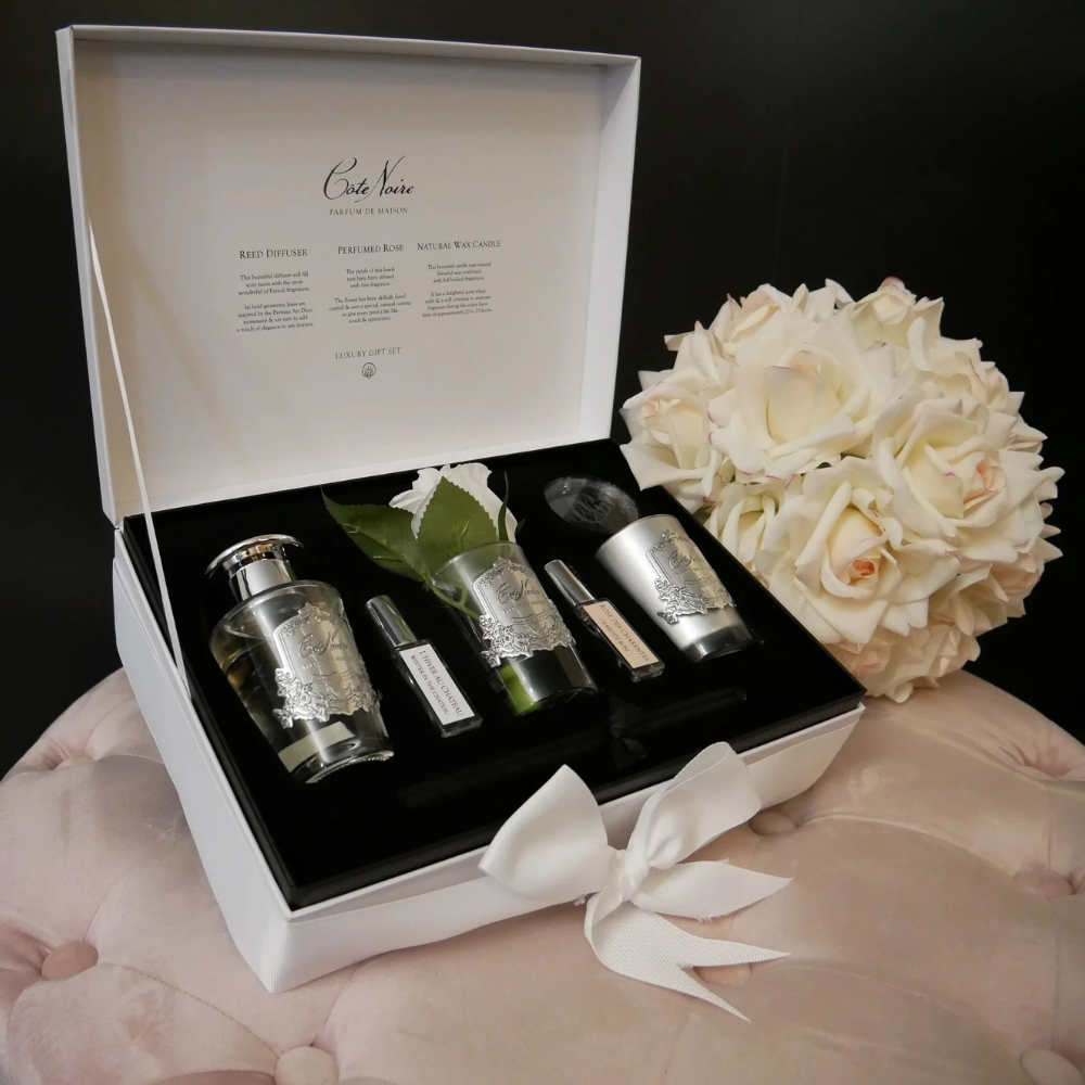 Indulge in the luxury of French countryside living with the Cote Noire Luxury Gift Set. This exquisite collection captures the essence of the idyllic Charente region, bringing sophisticated fragrance into every corner of your home.