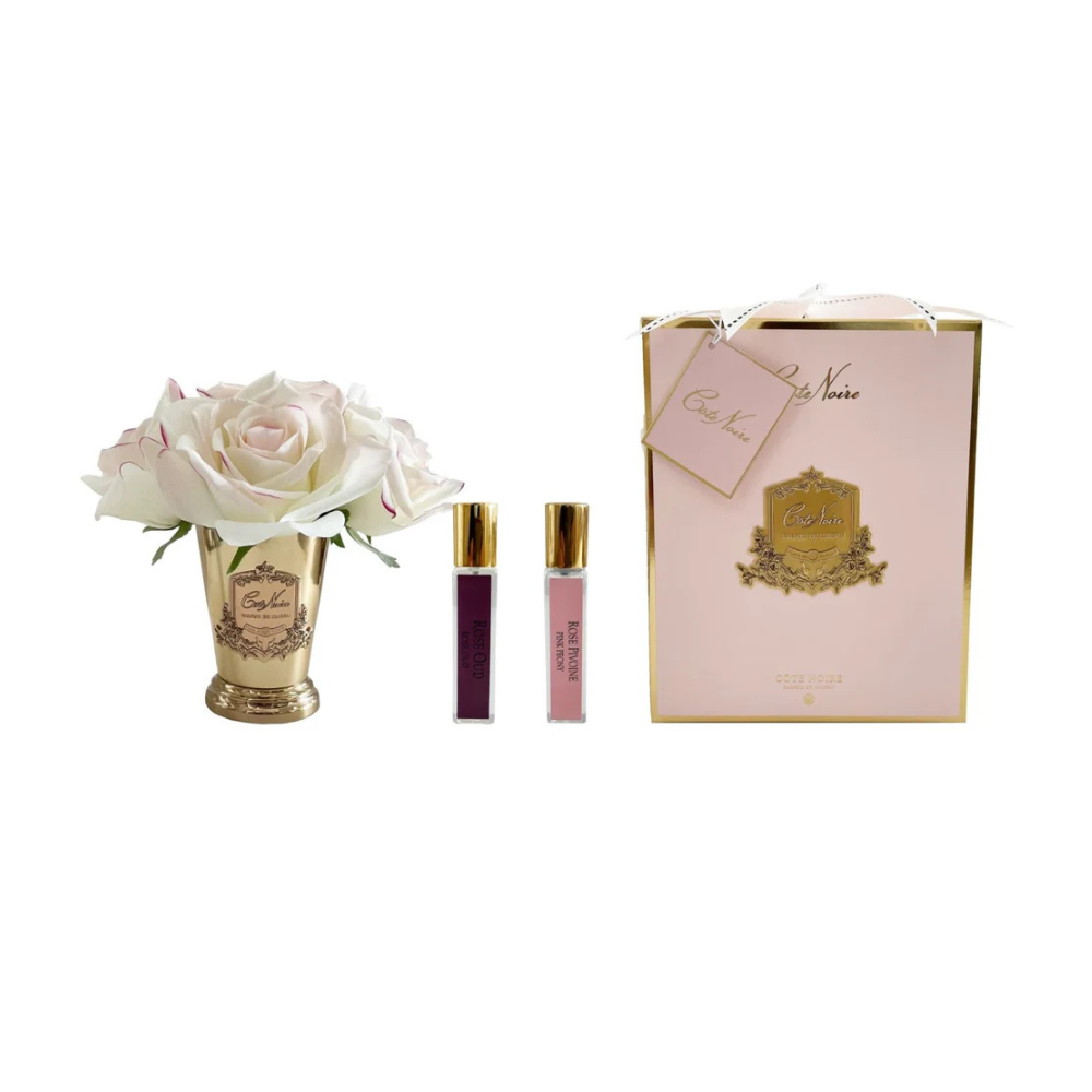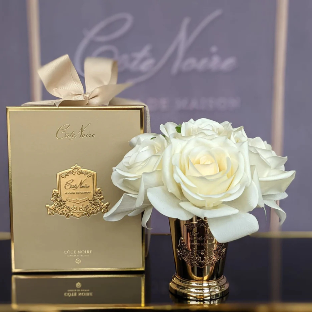 Cote Noire Seven Rose Bouquet in Champagne Metal Vase