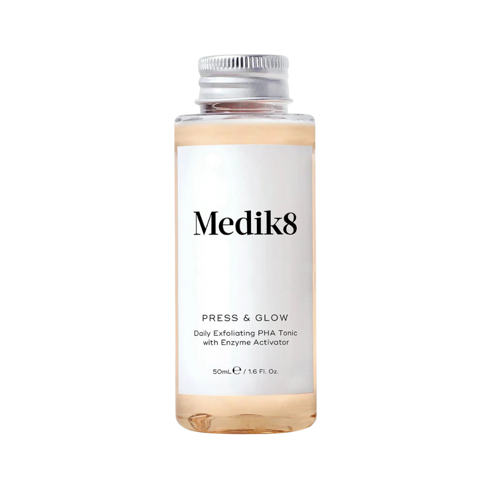 - A few times a week, swipe a cotton round soaked in Medik8 Press & Glow across skin after cleansing, carefully avoiding the delicate eye area.