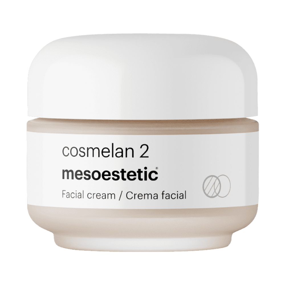 Mesoestetic Cosmelan 2 is a home cream whose main action is the attenuation and control of facial blemishes of melanic origin. It continuously attenuates the spots and regulates the overproduction of melanin, preventing their reappearance in the long term. This powerful formula is indicated to complete the depigmenting action of the cosmelan® aesthetic-professional method.