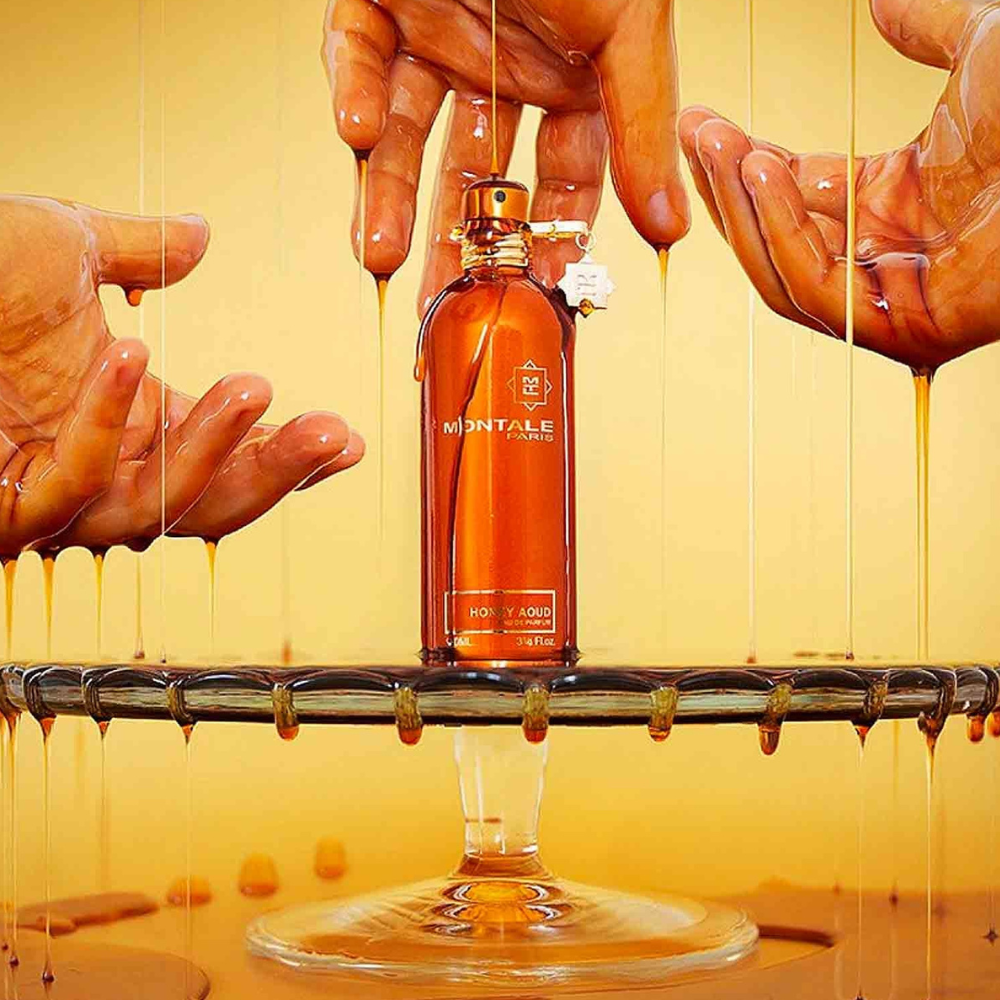 - Spritz Montale Honey Aoud EDP on pulse points - wrists, neck, and ankles - for a fragrant aura that lasts all day long.
